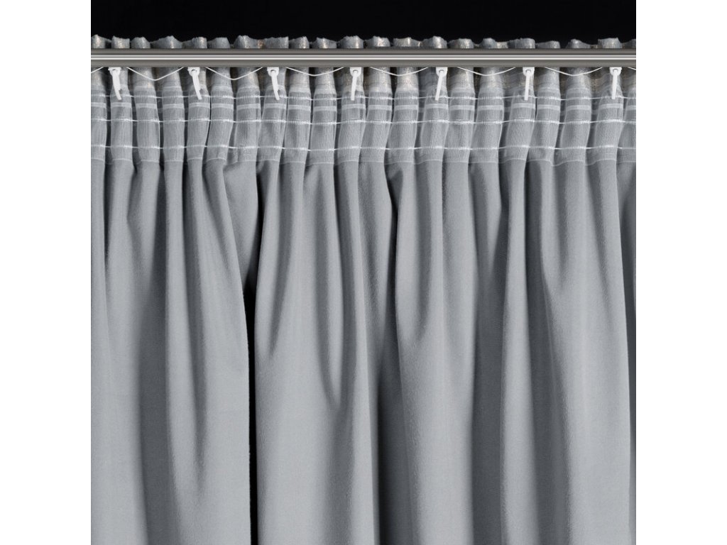 Praktická riasiaca páska upevnená v hornej časti látky zaručuje rýchlu a bezproblémovú výmenu závesu a umožňuje, aby záves ľahko splýval zo záclonovou tyčou a aby sa dala ľahko usporiadať do symetrických vĺn.