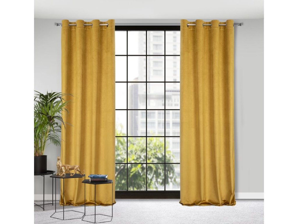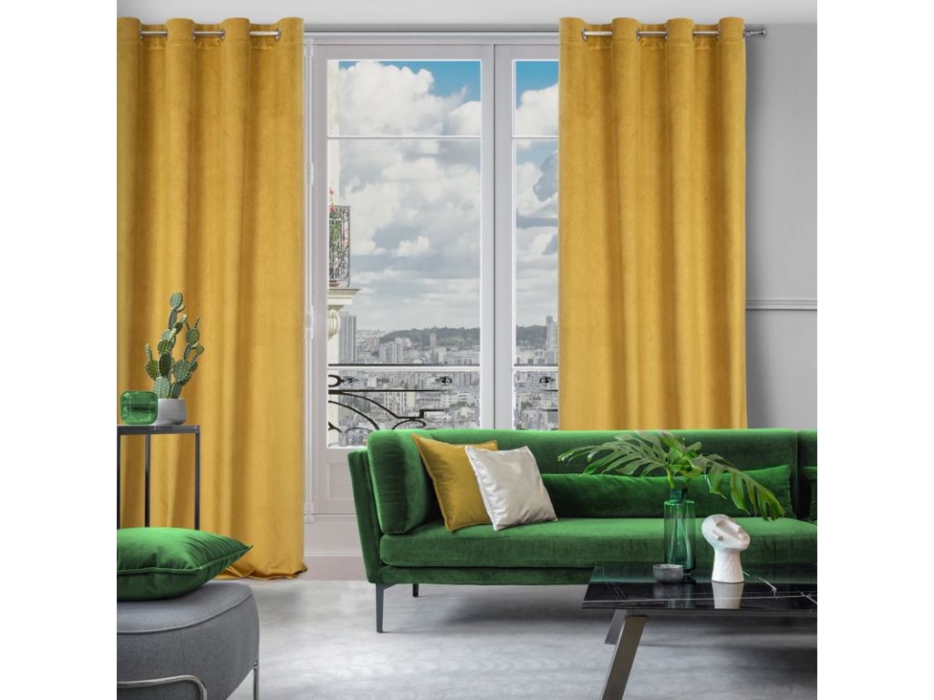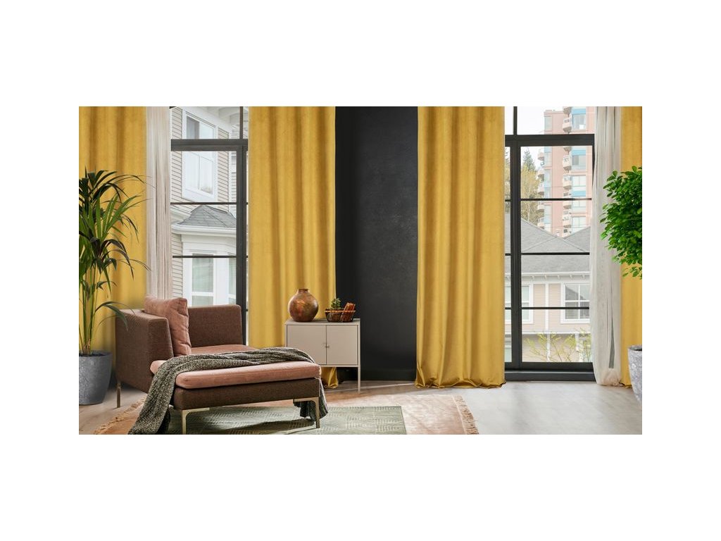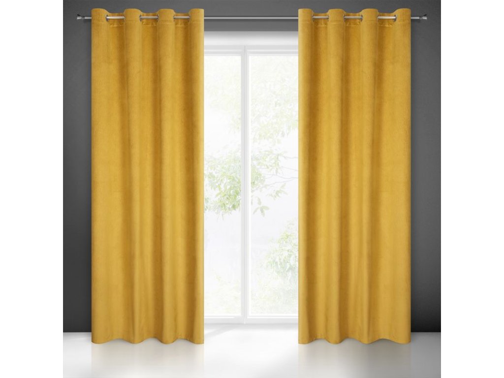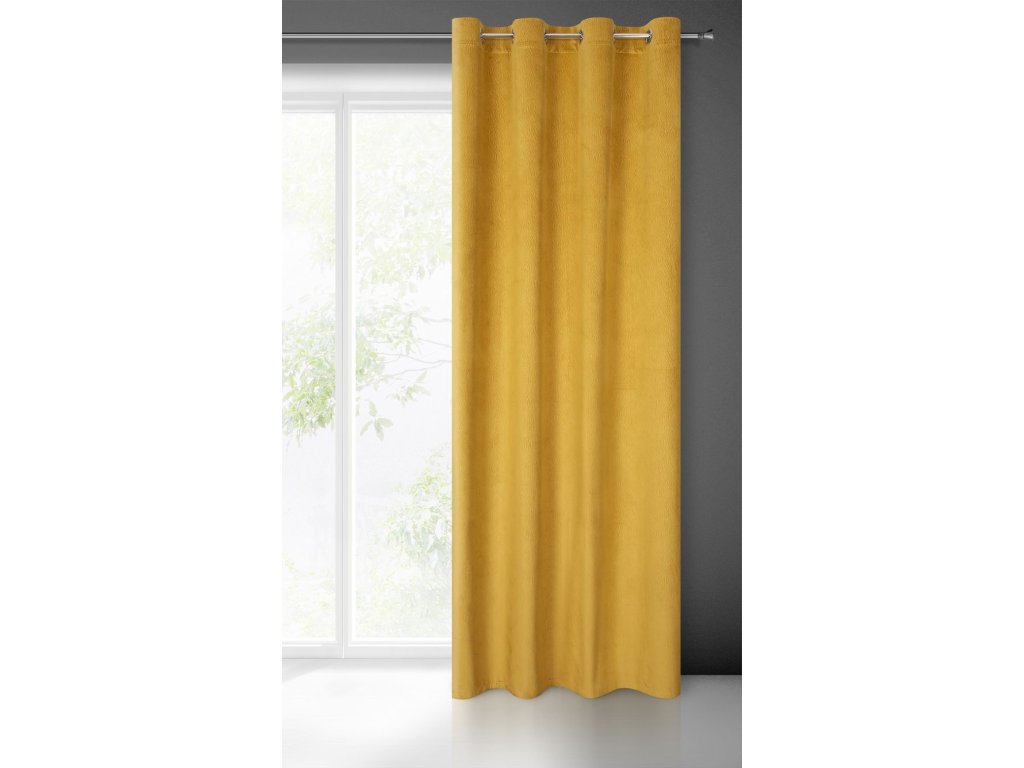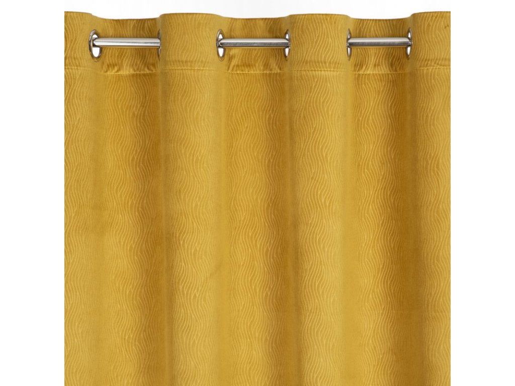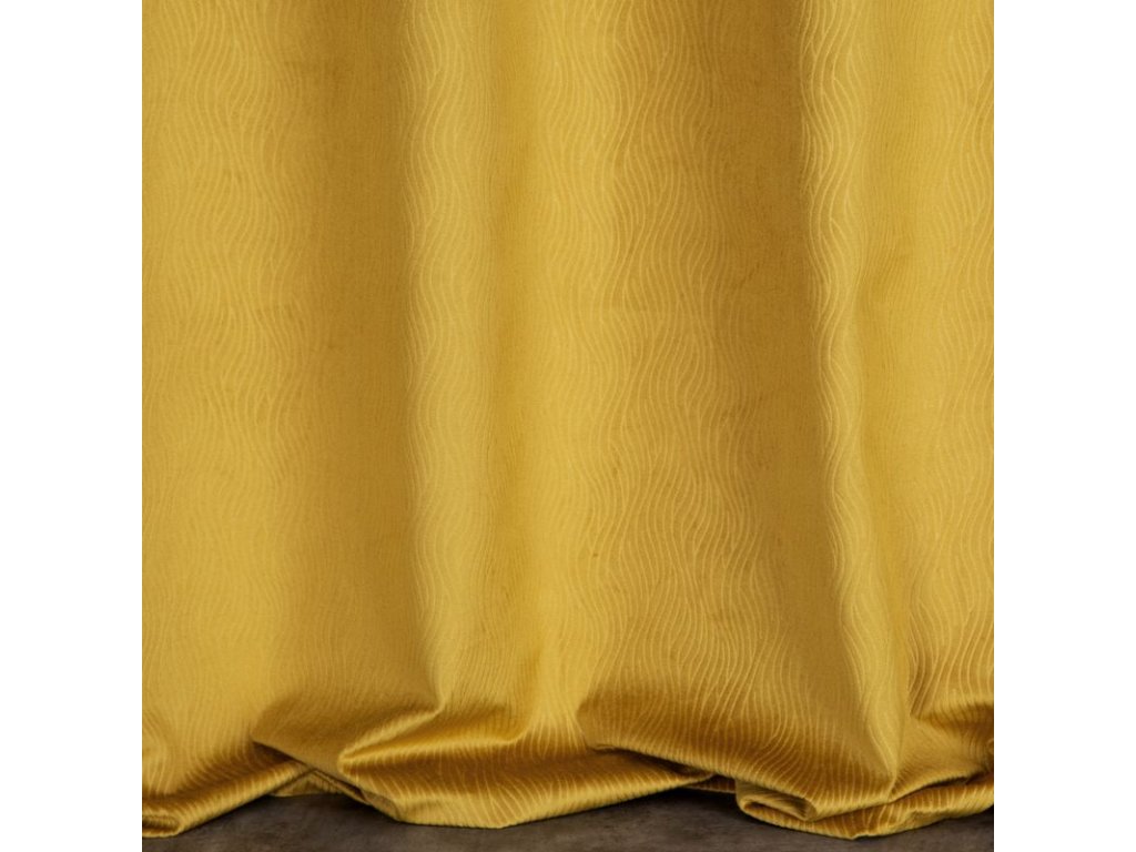 Zamatový záves s vlnitým vzorom LILI - horčicovožltý