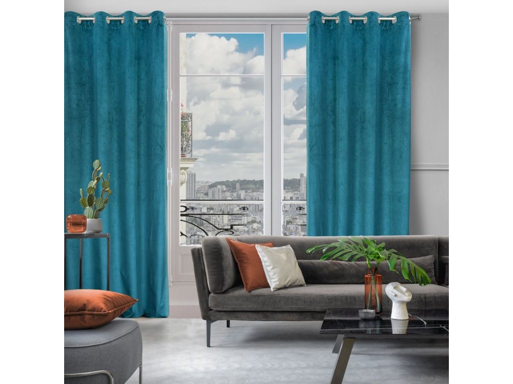 Zamatový záves s vlnitým vzorom LILI - tyrkysový