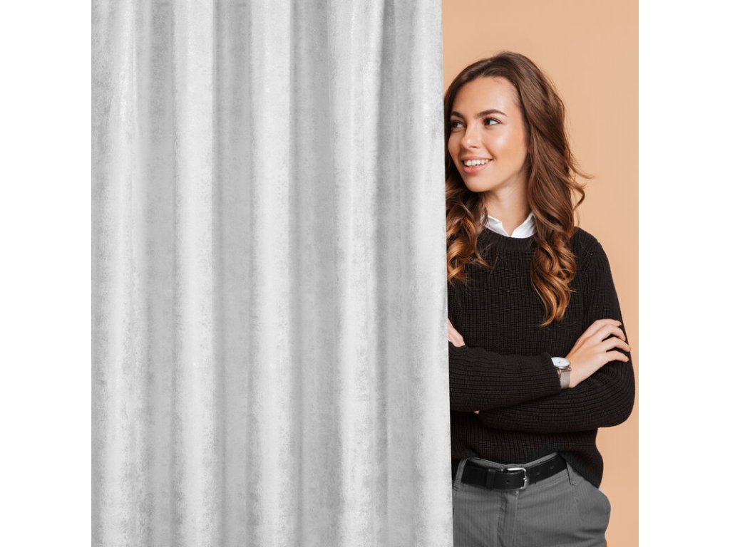 Dekoratívna strieborná bodkovaná potlač vytvára decentný, no efektný vzor, ktorý nádherne odráža svetlo a dodáva priestoru moderný a svieži charakter. Vďaka svojmu dizajnu záves dokonale ladí so svetlými, sivými, pastelovými či kovovými doplnkami.