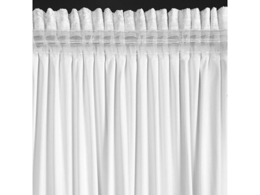 Záves je hotový na zavesenie – vybavený je riasiacou páskou, ktorá umožňuje jednoduché uchytenie na koľajnicu a presné tvarovanie rovnomerných vĺn. Tento spôsob zavesenia zaručuje elegantný vzhľad a profesionálne usporiadanie látky.