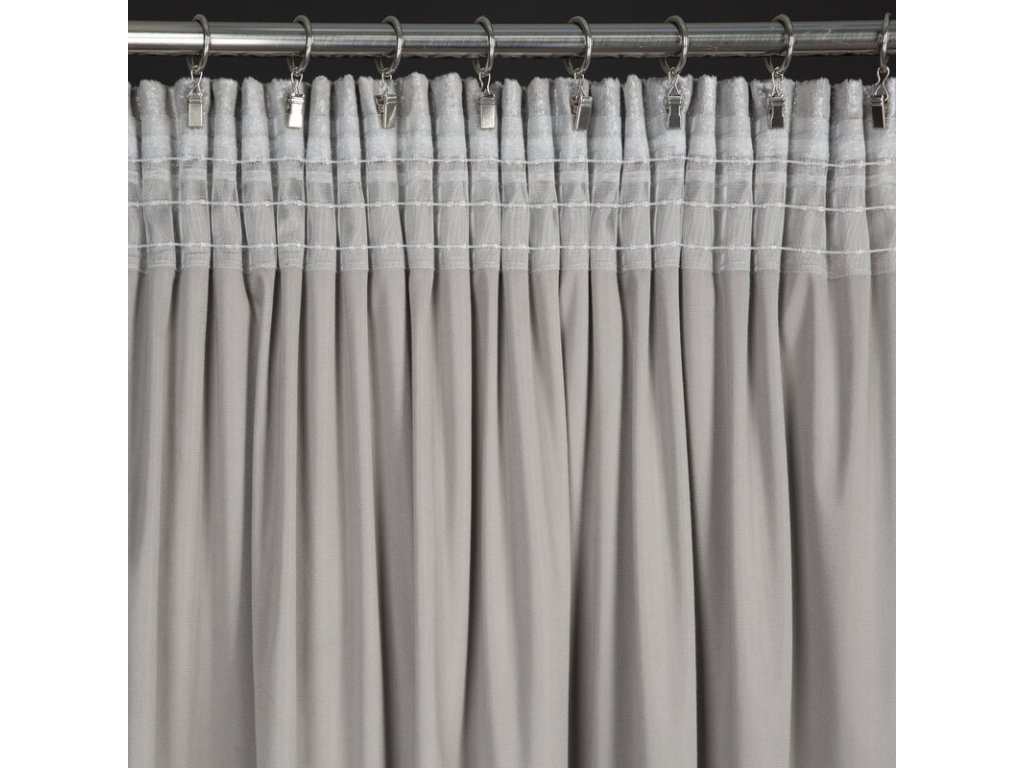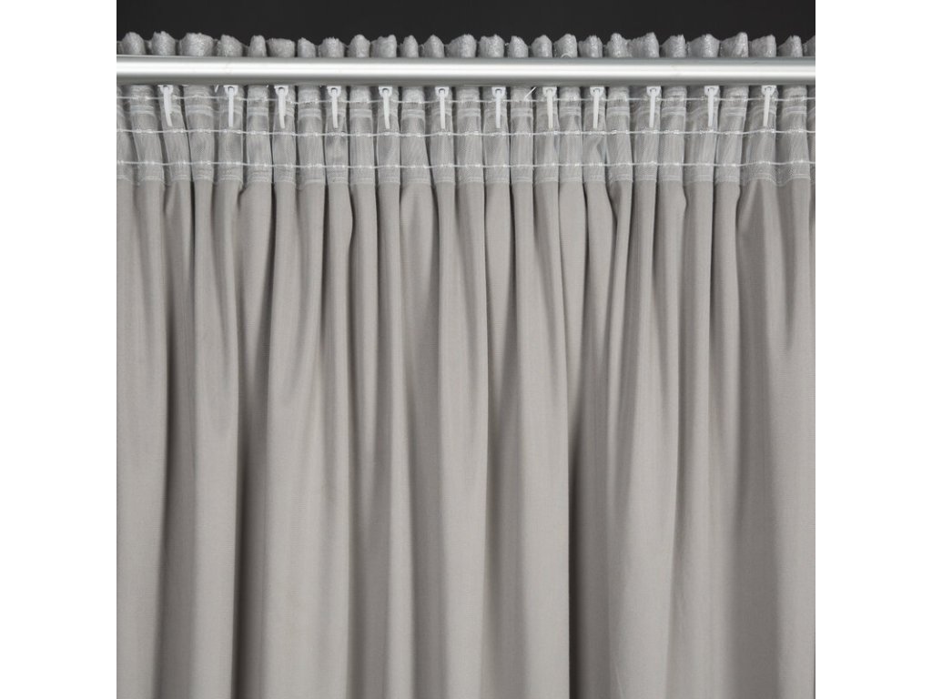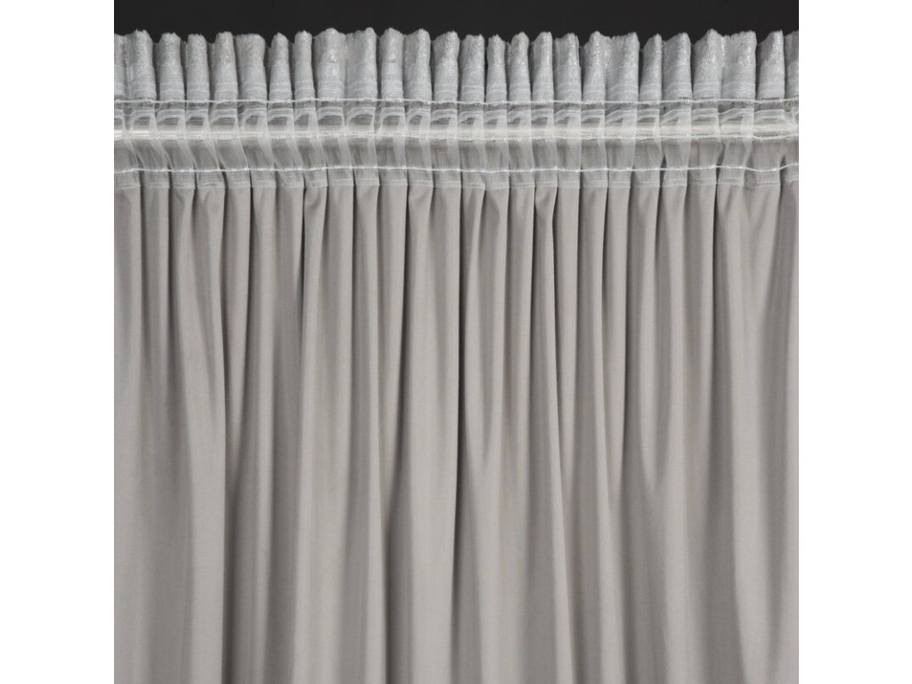 Záves je hotový na zavesenie – vybavený riasiacou páskou, ktorá umožňuje jednoduché uchytenie na koľajnicu a presné tvarovanie látky do elegantných, pravidelných vĺn. Takto vytvára upravený a harmonický vzhľad, ktorý dokonale doplní moderné aj klasické priestory.