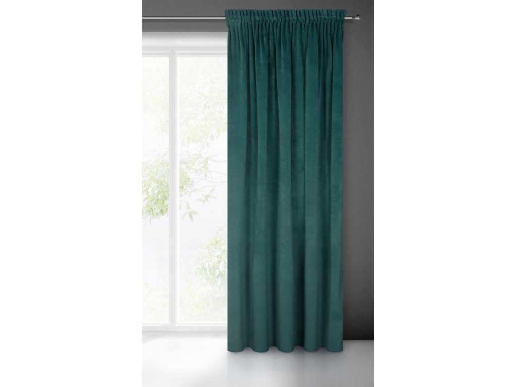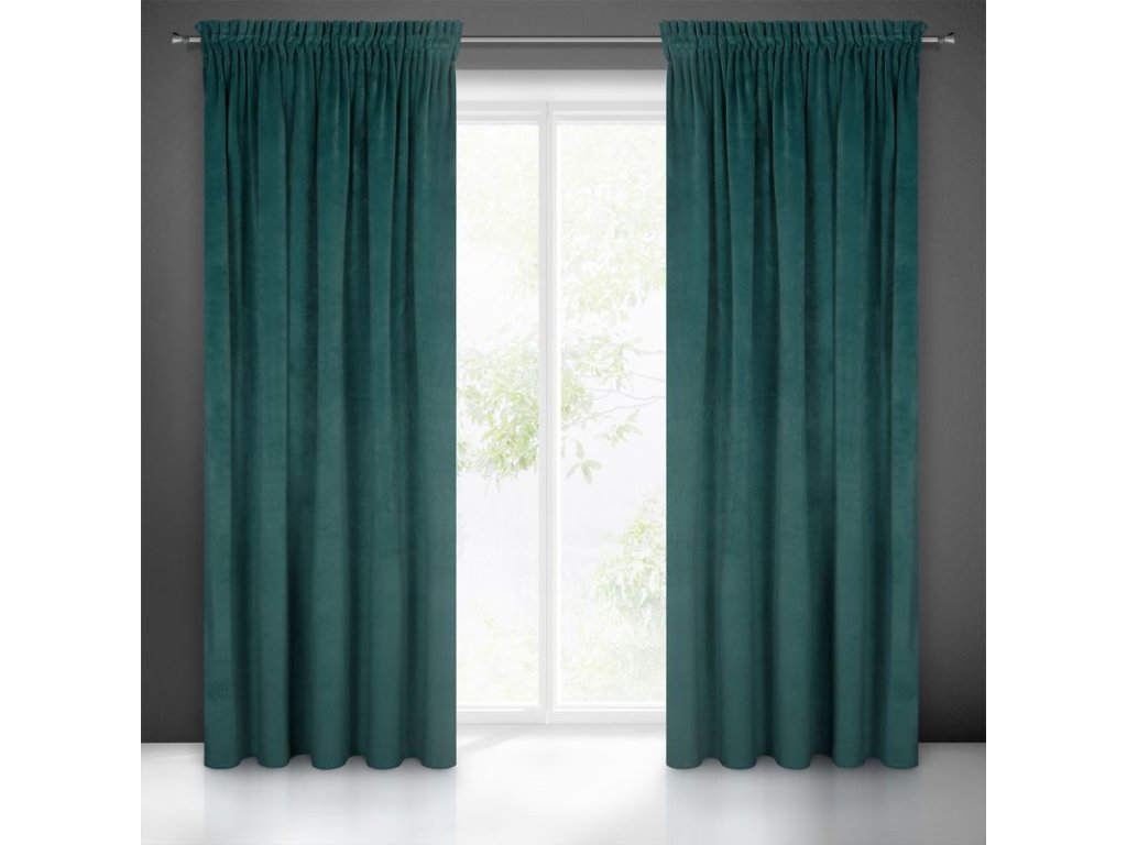Záves VILLA z exkluzívneho zamatu 140 x 270 cm v tmavotyrkysovej farbe - riasiaca páska