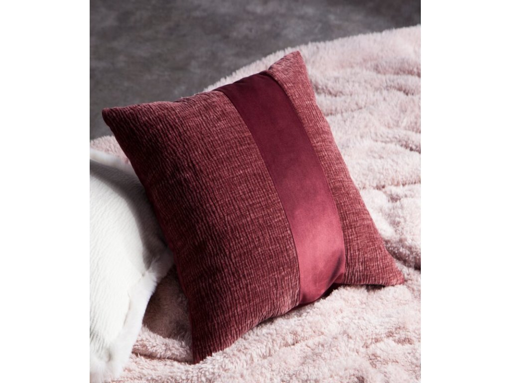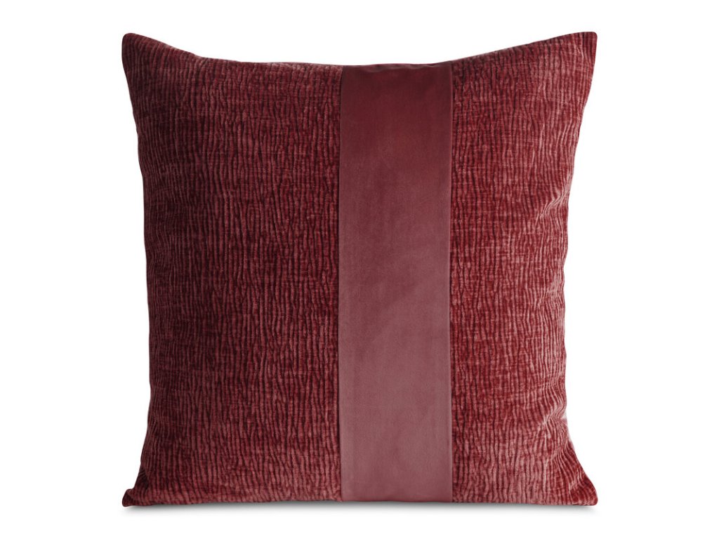 Ženilková obliečka na vankúš so zamatovým prúžkom CARLA - bordová