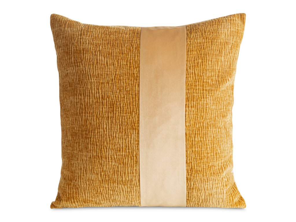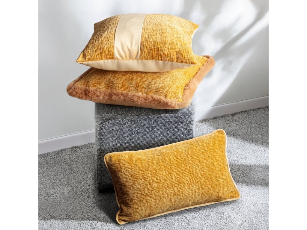 Ženilková obliečka na vankúš so zamatovým prúžkom CARLA - medovozlatá