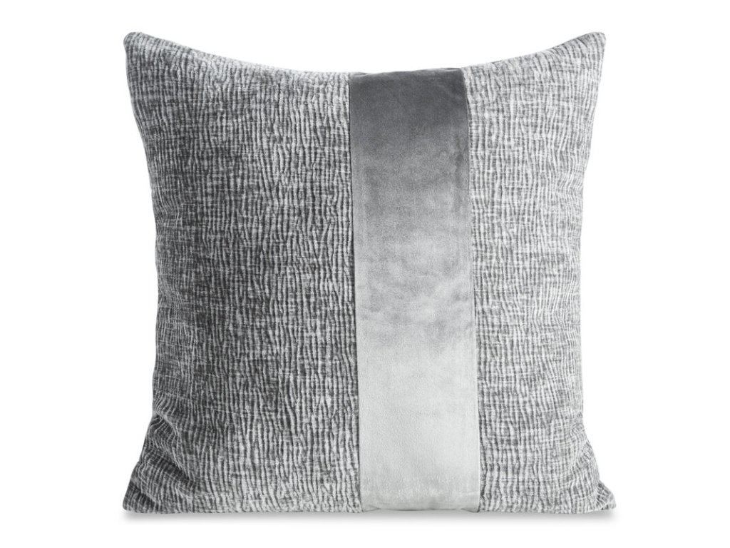 Ženilková obliečka na vankúš so zamatovým prúžkom CARLA - oceľová