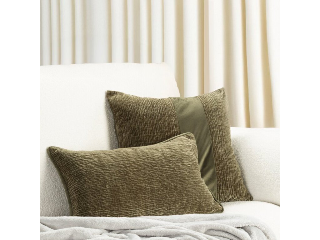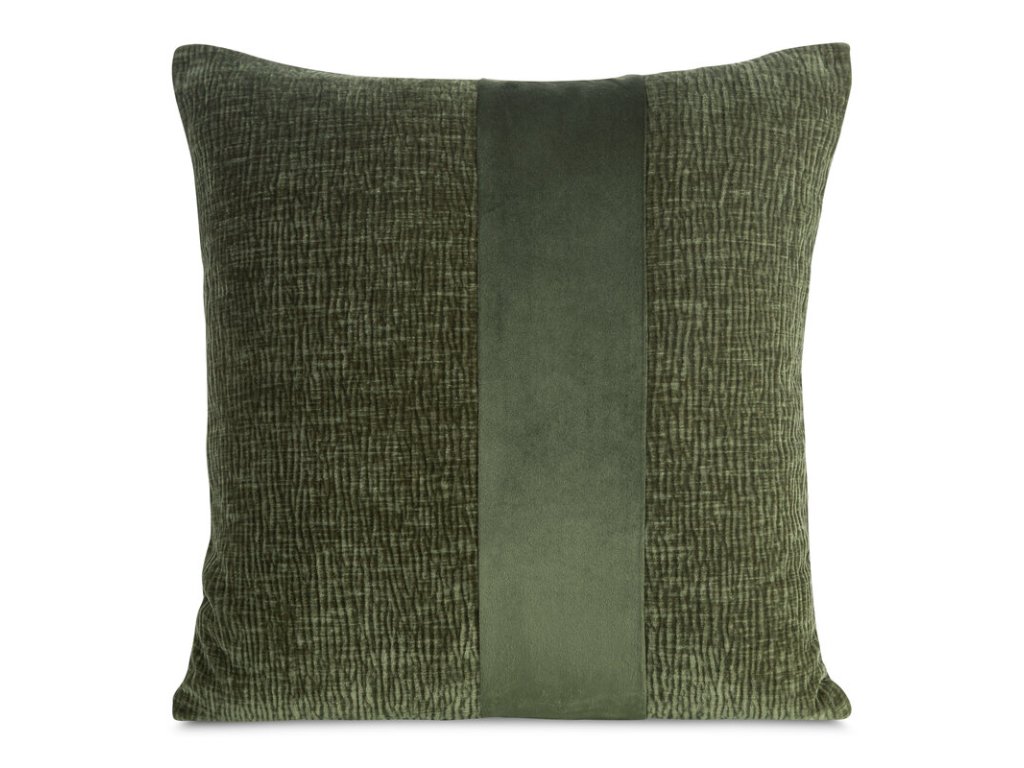 Ženilková obliečka na vankúš so zamatovým prúžkom CARLA - olivovozelená
